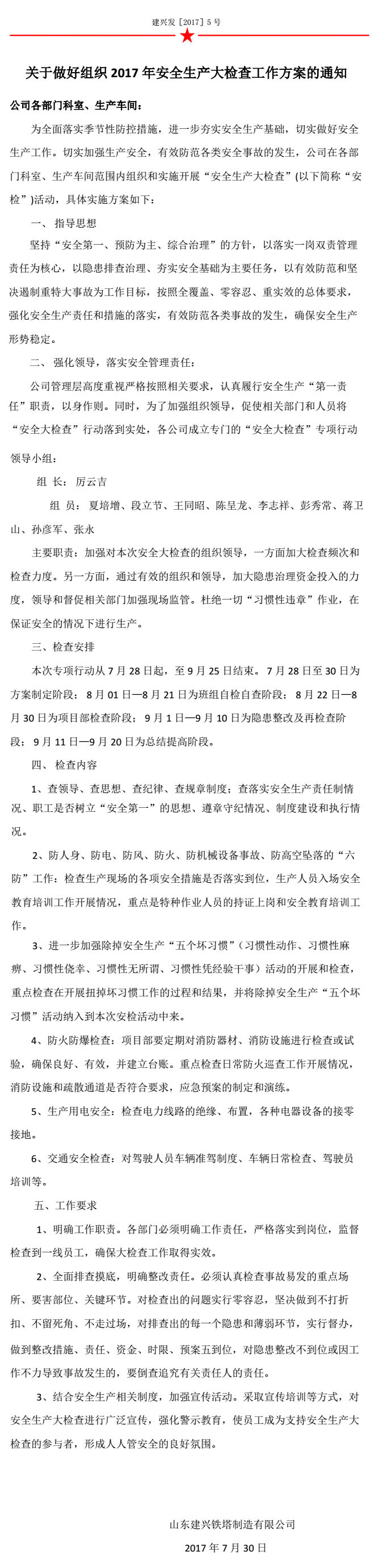 【通知】关于做好组织2017安全大检查工作方案的通知