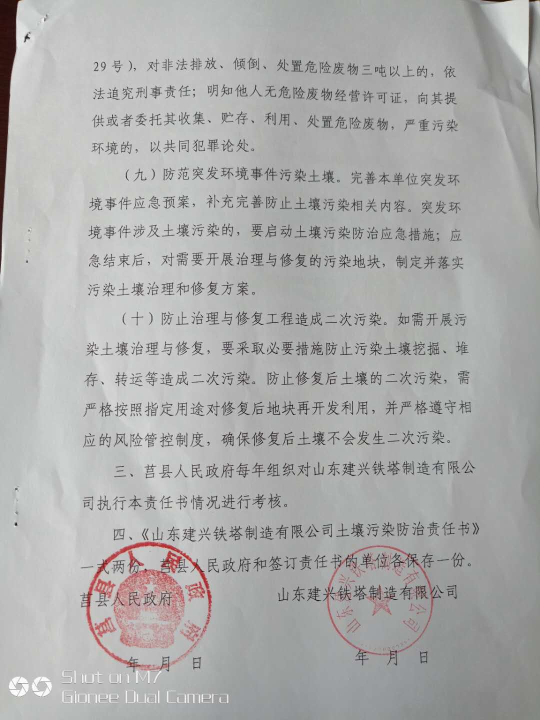 土壤污染防治责任书