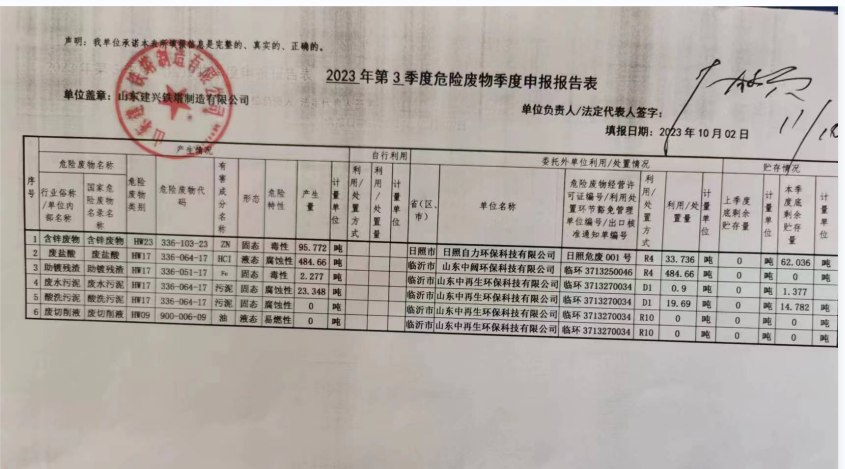 危险废物3季度申报表