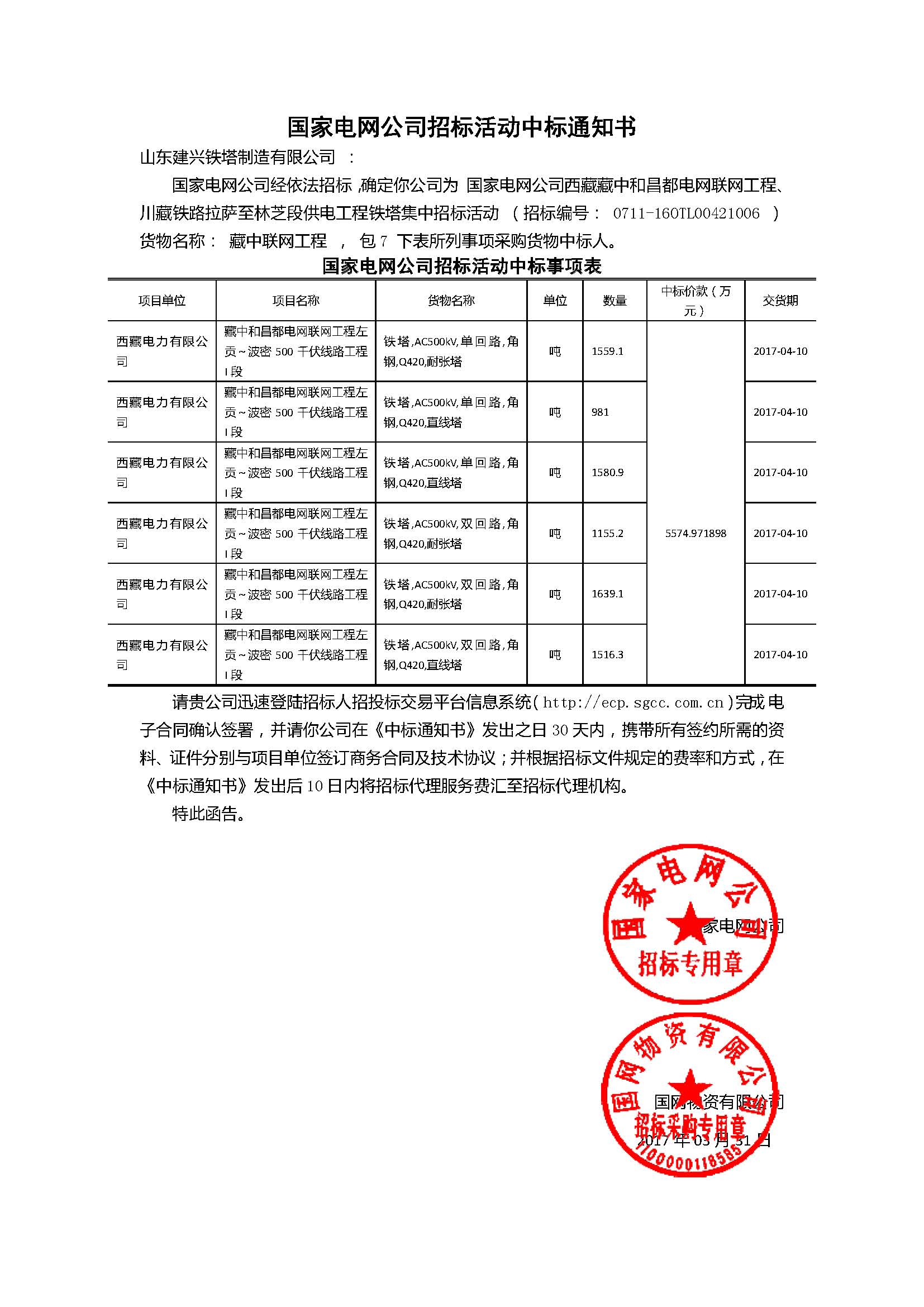 我公司中标藏中和昌都电网联网工程左贡-波密500kV线路工程包7