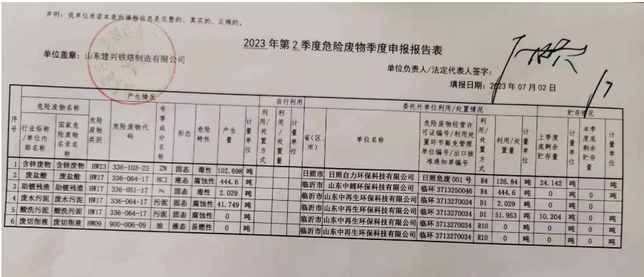 危险废物2季度申报表